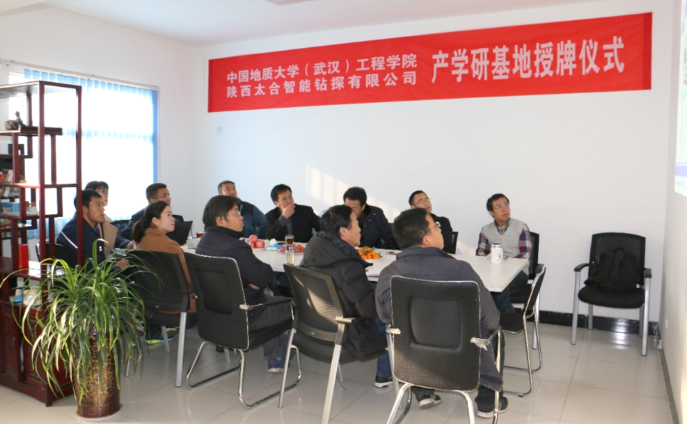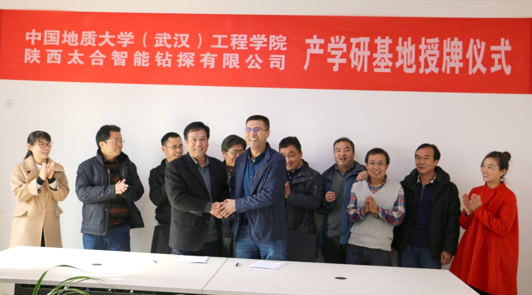 中国地质大学必赢线路检测中心党委书记陈飞、副院长窦斌以及勘查与基础工程系段隆臣书记、胡郁乐教授、陕西太合智能钻探有限公司董事长王义红、钻探工艺部部长石明善、机械研发部技术总监薛向宇、生产工艺部部长彭腊梅、仪器研发部部长杨英男和液压总工程师邓代传等十余人出席此次签约仪式。