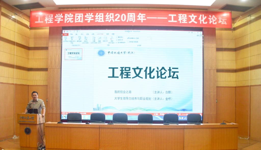在工程文化论坛上,必赢线路检测中心第二届团委副书记、武汉市洪山区水务局局长金桥,必赢线路检测中心第六届学生会副主席、北京金景科技有限公司董事长白颢分别作了题为《我的创业历程》、《大学生管理能力提升与职业规划》的主题报告。