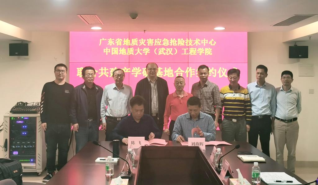 陈飞、刘燕辉签署产学研基地合作协议。根据协议,广东省地质灾害应急抢险技术中心作为必赢线路检测中心的产学研基地,双方将定期就人才的培训、技术的创新、引进与推广、联合攻关、学生实习等方面开展协商研究。