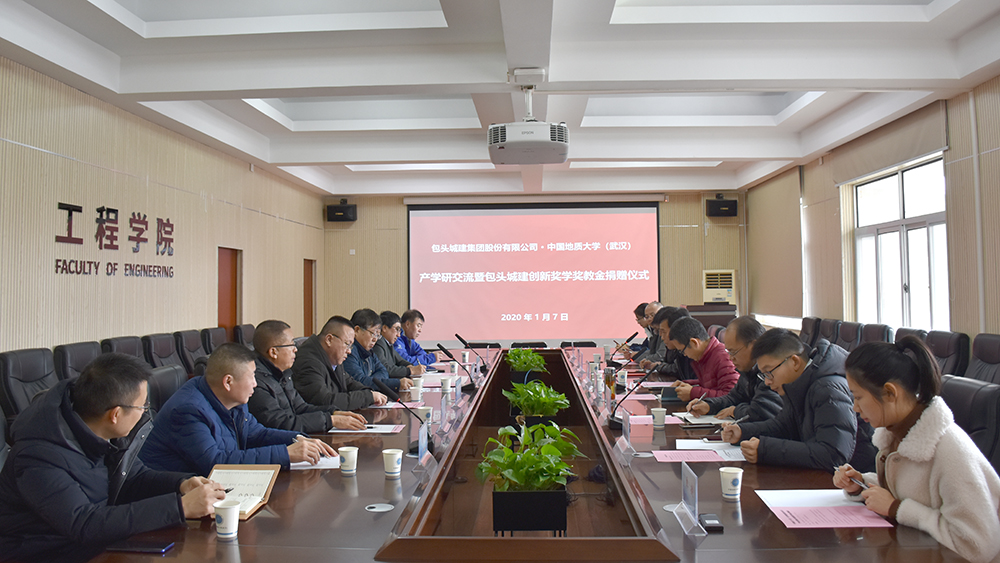 (通讯员卓越 摄影王灿)1月7日,必赢线路检测中心在工程楼315会议室召开“中国地质大学(武汉)-包头城建集团股份有限公司产学研交流暨包头城建创新奖学奖教金捐赠仪式”,包头城建集团股份有限公司向学校进行第四次捐赠。包头城建集团股份有限公司董事长、总经理刘江一行5人、校友工作与教育基金管理处、必赢线路检测中心相关负责人参加捐赠仪式。