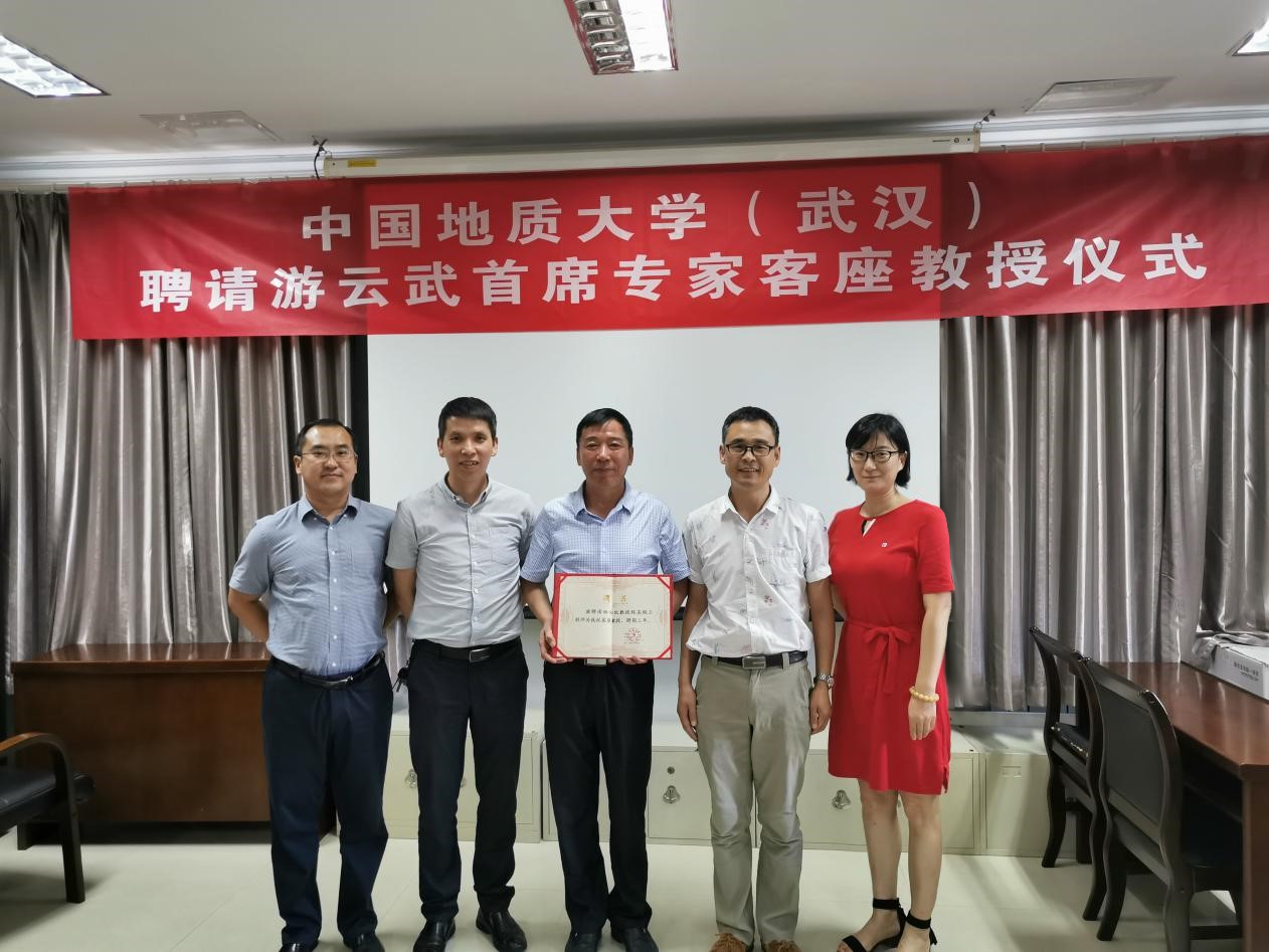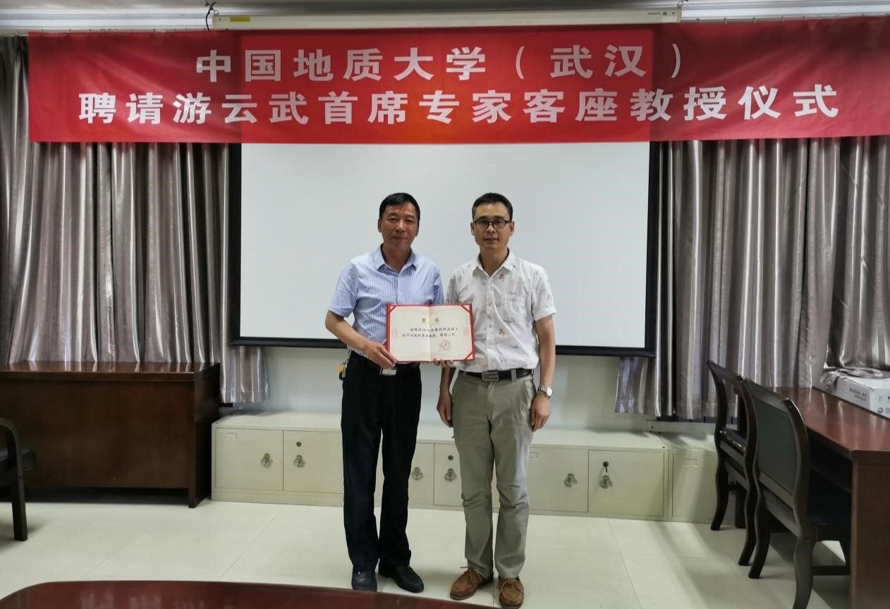 8月29日下午,中国地质大学(武汉)聘请游云武首席专家为客座教授的仪式在江汉油田工程有限公司会议室举行。江汉油田工程有限公司游云武首席专家、必赢线路检测中心副院长窦斌教授及双方相关人员出席仪式。仪式由窦斌副院长主持。