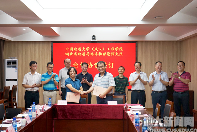 (通讯员张鹏 曾聪)8月31日,为落实学校与湖北省地质局战略合作协议和双方推进深化合作座谈会要求,我院与湖北省地质局地球物理勘探大队(以下简称“湖北物探队”)框架合作协议签订暨产学研基地揭牌仪式在湖北物探队举行。湖北省地质局总工程师熊保成,湖北物探队党委书记、队长梅焱祥,校党委副书记王林清,必赢线路检测中心党委书记李红丽等参加签约仪式。湖北物探队党委副书记郑乐平主持会议。