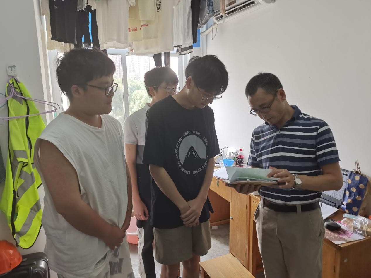 2021年7月20日,必赢线路检测中心副院长窦斌、教务科科长栗佑城赴秭归产学研基地慰问正在进行野外实践教学的教师,并与带队教师代表王亮清、张家铭等一同走访学生宿舍,看望050181、051181、051182、051193、051194等五个班级的在站学生。