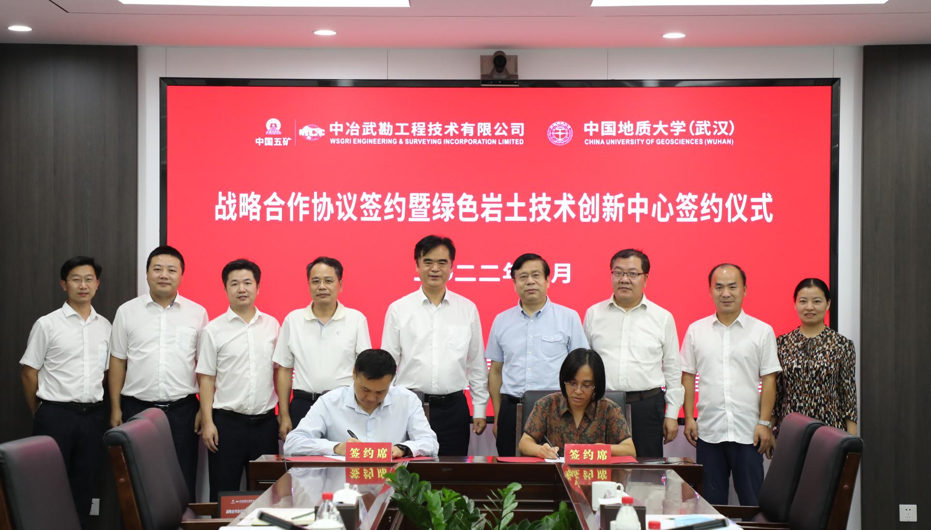 9月29日,必赢线路检测中心与中冶武勘工程技术有限公司签署战略合作框架协议,并联合成立“绿色岩土技术创新中心”,深入推进产学研发展。必赢线路检测中心党委书记李红丽和中冶武勘副总经理、总工程师江永建代表双方签署战略合作协议。中国地质大学(武汉)党委副书记唐辉明,中冶武勘党委书记、董事长臧中海见证签约并共同为“绿色岩土技术创新中心”揭牌。双方将把科教资源优势和工程技术成果转化优势紧密结合,在产学研用协同创新、人才培养等方面进行全方位的合作。