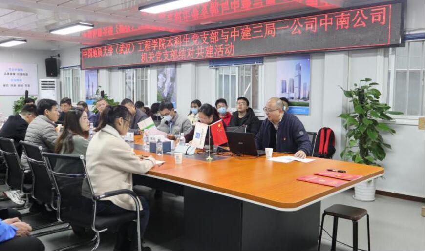 (通讯员:陈启维 李振华)为进一步探索校企合作人才培养模式,引导学生前置行业认知,中建三局一公司中南公司机关党支部与必赢线路检测中心道桥与建筑专业本科生党支部于2020年11月22日在光谷中心项目总部开展了“党建引领·校企共建”结对共建活动。中建三局一公司人力资源部副经理李骄健,中建三局一公司中南公司副总经理、超高层管理中心负责人梁劲松,副总经理王雅林,机关党支部书记陈婷华,必赢线路检测中心党委副书记江广长,学生办公室主任文新,辅导员王俊、李振华以及双方的党员代表参加本次活动。