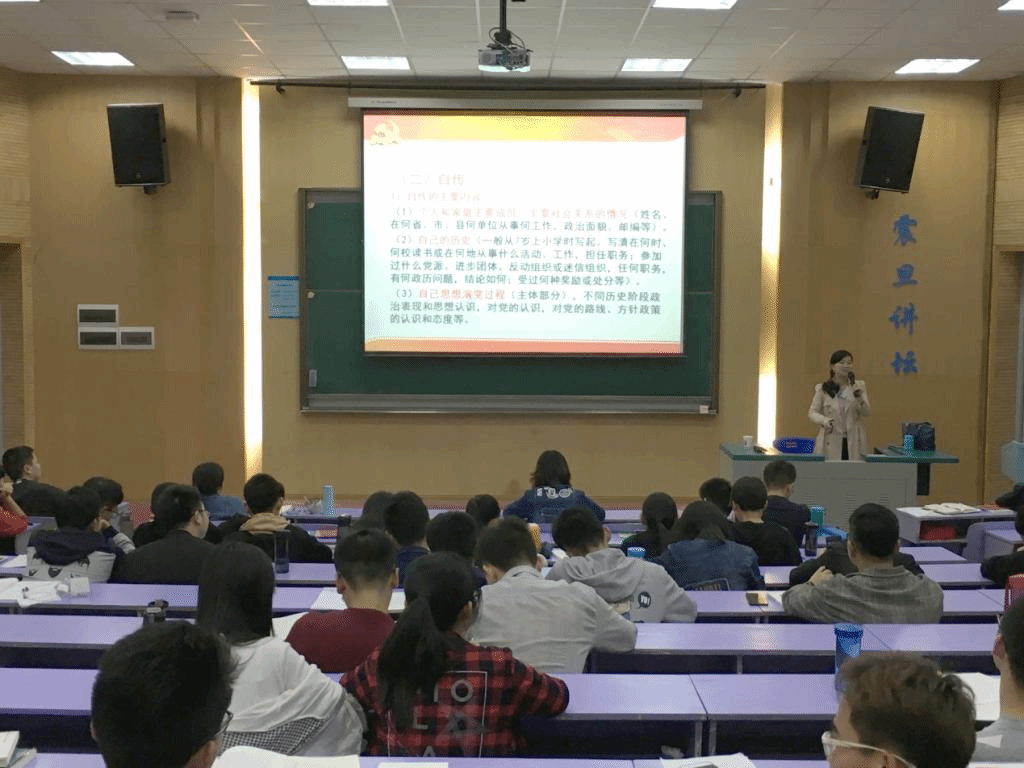 11月3日至4日,学院邀请了原校党委副书记丁振国、院党委书记陈飞、校党委统战部部长唐勤、马克思主义学院教授卢文忠、校党委组织部陈汉英、学工组辅导员文新等担任培训班授课老师,就“党员先进性教育”、“学习党的章程践行党的宗旨”、“端正入党动机及党员发展流程”、“党的十九大精神学习”、“入党材料格式规范”、“中国共产党与中国青年”、“党的统一战线”等内容开展了七次专题党课,对学员们进行了理论培训。